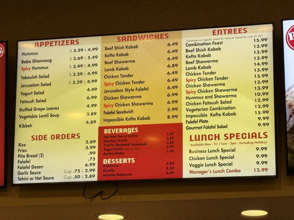 Vegetarians and vegans will appreciate the numerous plant-based choices, complemented by savory side orders such as falafel and pita bread. Don’t forget to save room for dessert; the Nutella Baklawa and Pistachio Kunafa are indulgent treats that promise to satisfy your sweet tooth. With attentive service, particularly from standout staff like Latif, your dining experience at Pita Inn is bound to be memorable.